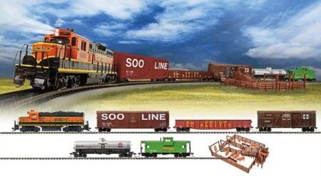 Head west for hours of fun aboard these complete HO Scale train sets! Leading the way is a powered GP9 low-nose diesel with working headlight. You'll also get a caboose, stock car, tank car, 50' boxcar and 50' gondola with metal RP-25 wheels and plastic knuckle couplers for improved performance. For more fun a Life-Like Snap-Loc(R) Stock Pen and SceneMaster(TM) Cattle figures are included. For fast and easy set up, there's a 36 x 54" 91. 4 x 137.1cm oval of Bachmann(R) EZ-Track(R), that snaps together in seconds and can be used on any surface. Power is supplied by a UL-listed MRC power pack.Cheap "Trainline Big Sky Express Diesel Freight HO scale train set with Bachmann EZ Track Burlington Northern Santa Fe" Discount Review Shop